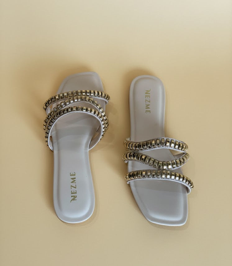 Celeste is designed to elevate your everyday style with effortless glam. Featuring triple golden-detailed straps on a sleek nude base, these sandals strike the perfect balance between sophistication and comfort—making them a versatile choice for any occasion.