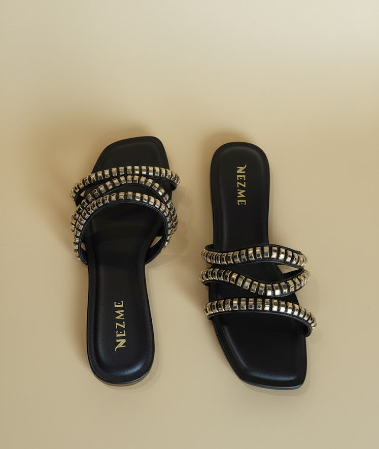 Noir is designed to elevate your everyday style with effortless glam. Featuring triple golden-detailed straps on a sleek nude base, these sandals strike the perfect balance between sophistication and comfort - making them a versatile choice for any occasion.
